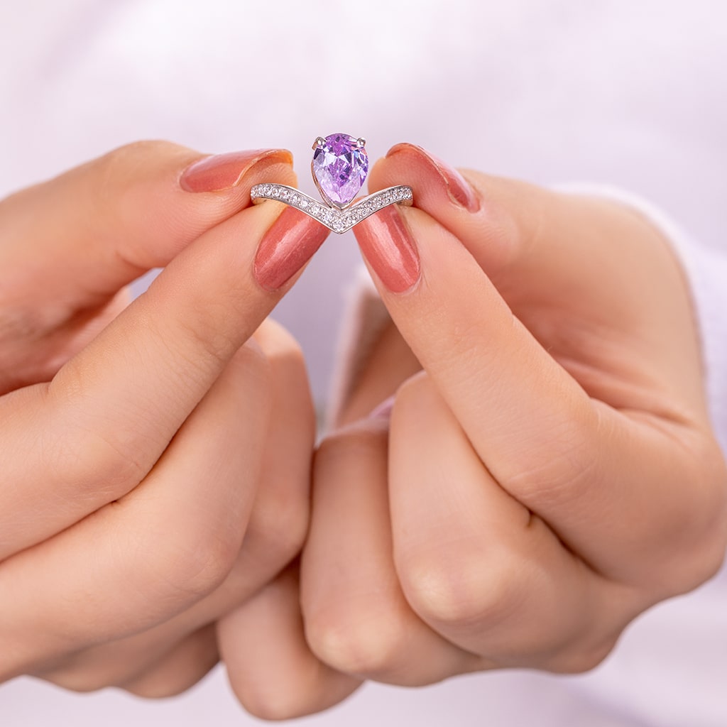 انگشتر طلا نگین دار مدل تخمه اشک بنفش