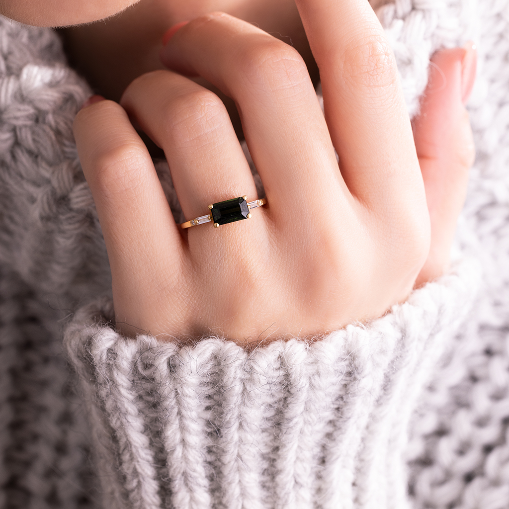 انگشتری طلا مدل تورمالین مستطیل
