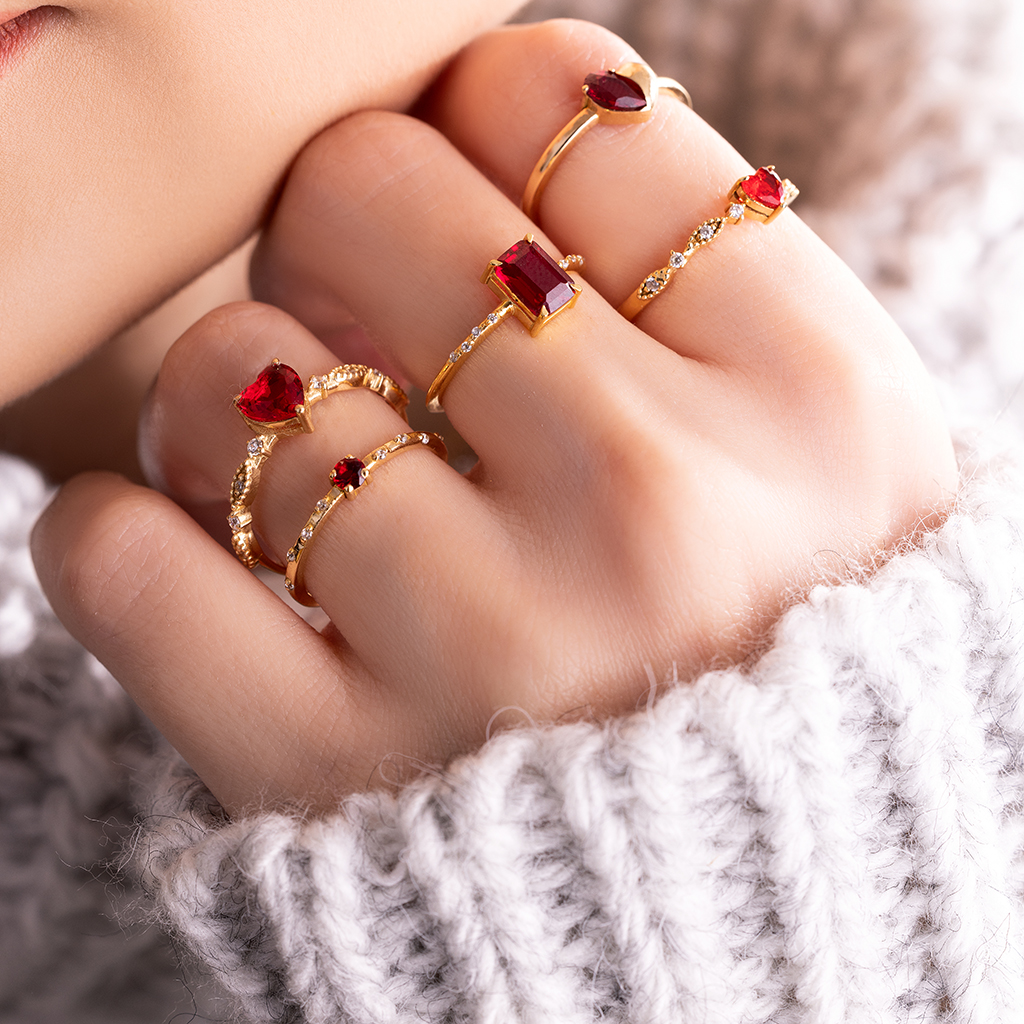 خانه طلای زنانه انگشتر طلا انگشتر طلا مدل تک سبز قرمز رکاب نگین