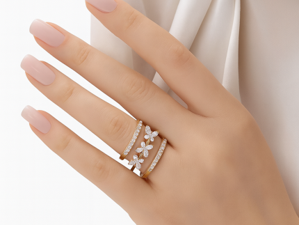 انگشتر طلای ظریف دخترانه دو رج نگیندار