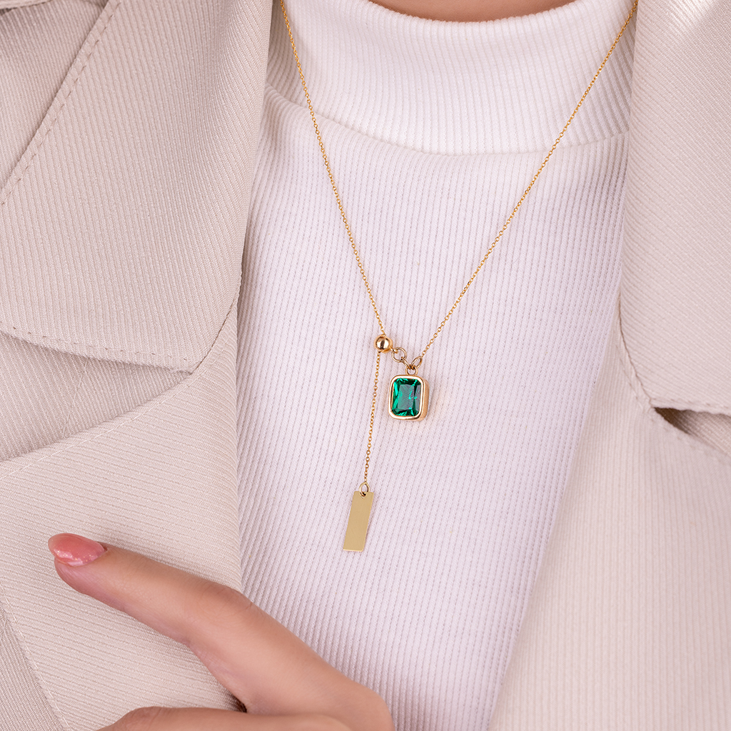 گردنبند طلا نگین سبز مدل آسانسوری